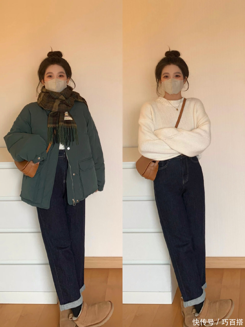 一是不错从配色高下手,红色绿色首当其冲,博主身上这类米黄色竭诚毛衣也能径直码住。