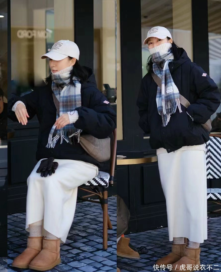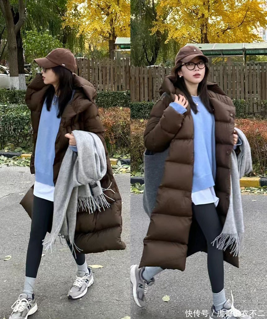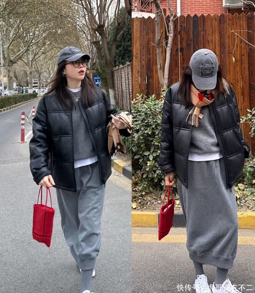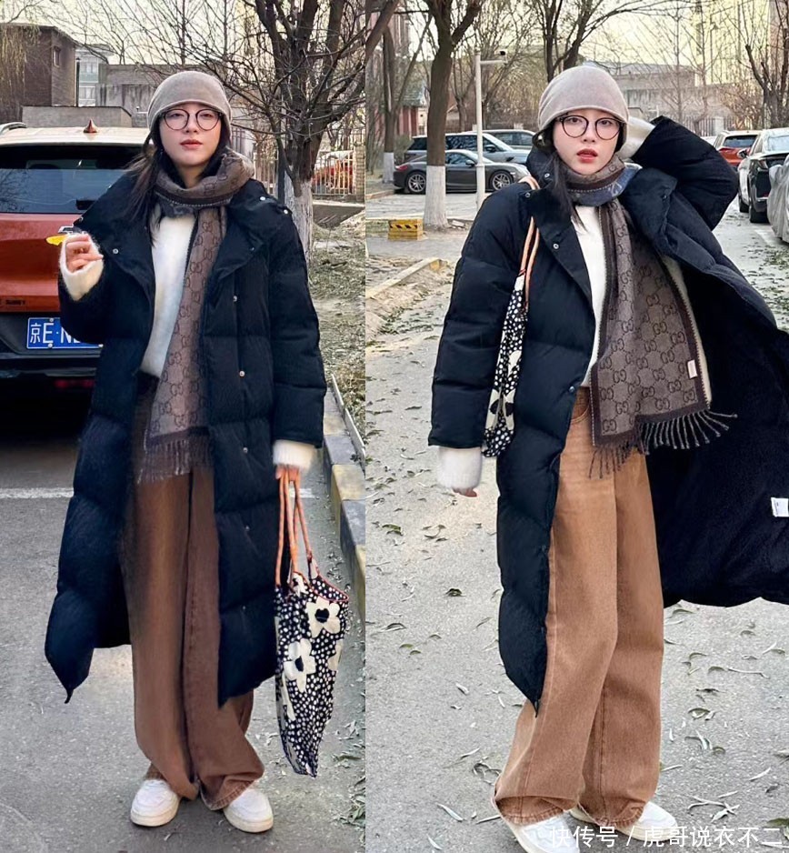 譬如说这位博主就讹诈了同色系的搭配法,将玄色长款羽绒服与打底裤搭配在了一齐,很昭着的构建出了充沛的举座感,两者水乳交融的效用,也在看护协作感的同期,尽量幸免展现出腿部污点。