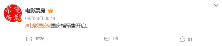 况且国庆档电影在26号0点启动预售,仅仅针对猫眼淘票票,部分影城在23号之后在自家app和影城前台自有平台都可以售票,只不外购买东谈主数未几。