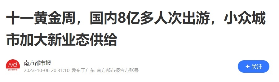 本年是疫情战略放开后的第一个中秋国庆假期。10月6日下昼,文化和旅游部发布数据泄露:中秋节、国庆节假期8天,国内旅游出游东谈主数8.26亿东谈主次,按可比口径同比增长71.3%,按可比口径较2019年增长4.1%;罢了国内旅游收入7534.3亿元,按可比口径同比增长129.5%,按可比口径较2019年增长1.5%。